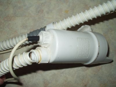 このとおりバックリ。ポンプの向こうのホースはテープで補修しています。