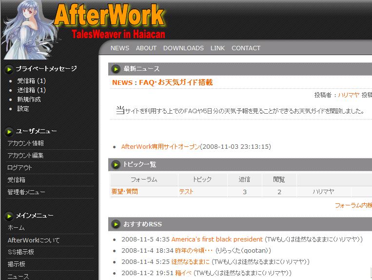 MMO-RPG「TalesWeaver」ハイアカンサーバーにて、クラブ「AfterWork」を運営していました。